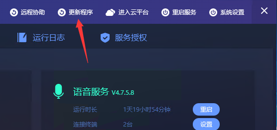 点击服务端上的更新程序功能,既可以自动开启