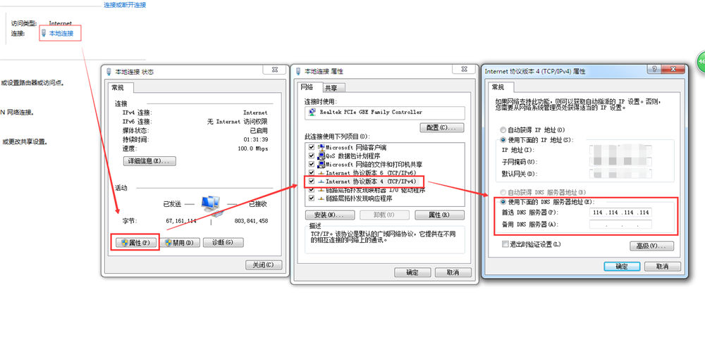 1.计算机右下角右键网络图标:打开网络和共享中心-本地连接-属性-IP4协议。