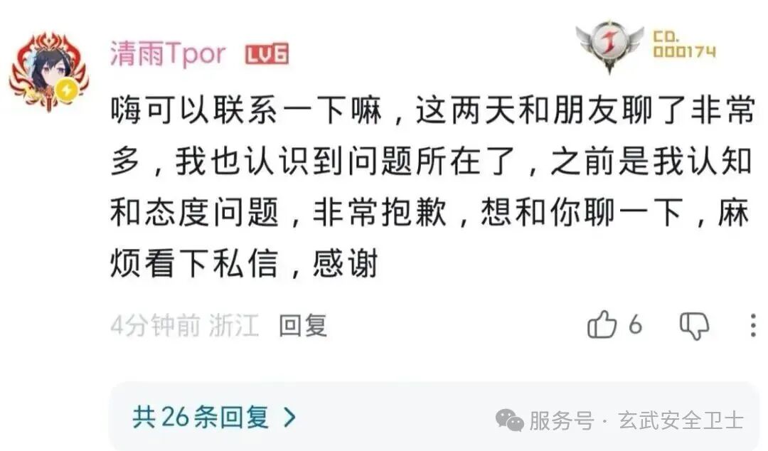 与此同时,越来越多网友爆出清雨的黑料,包括早期直播时与人对喷、口碑不佳等过往劣迹。直到此时,清雨才彻底慌了神,开始紧急“降温”——他在“五月食伍”的社交账号评论区留言,称自己“认识到了问题所在”,希望私下联系沟通、道歉赔偿。