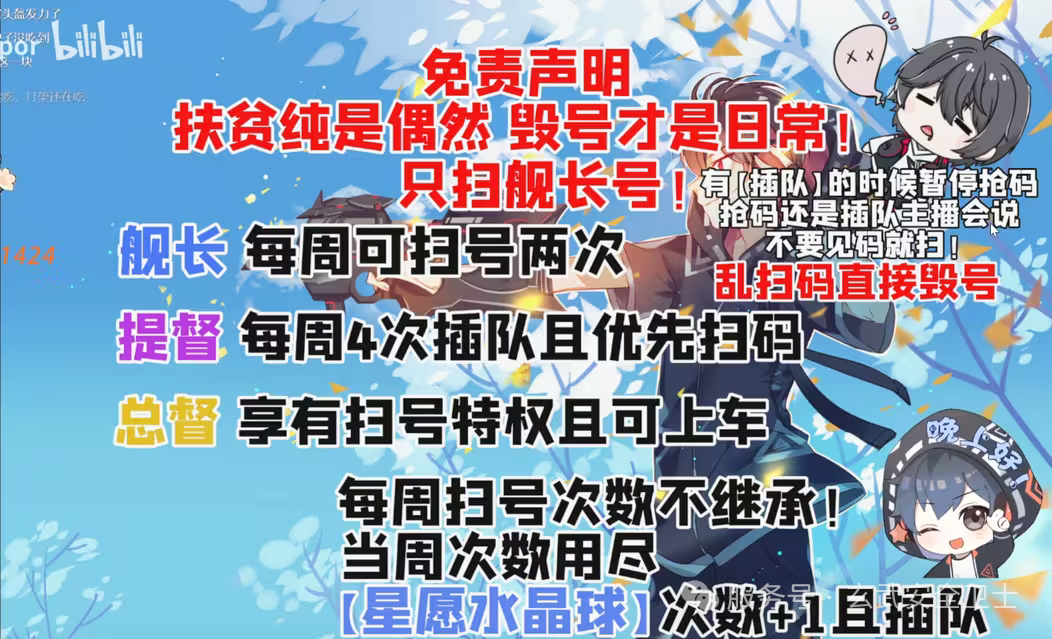 舰长,就是B站的粉丝会员机制,以198/月成为某位主播的舰长,表示喜爱。扫码上号,则是B站三角洲主播常见的一种舰长福利,即每个月可以帮舰长玩几局游戏,然后帮助舰长判断目前所处的游戏对局是否正常,出金概率是否正常。细心的五月注意到,主播因为连续被要求玩不喜欢的干员,情绪明显不佳。