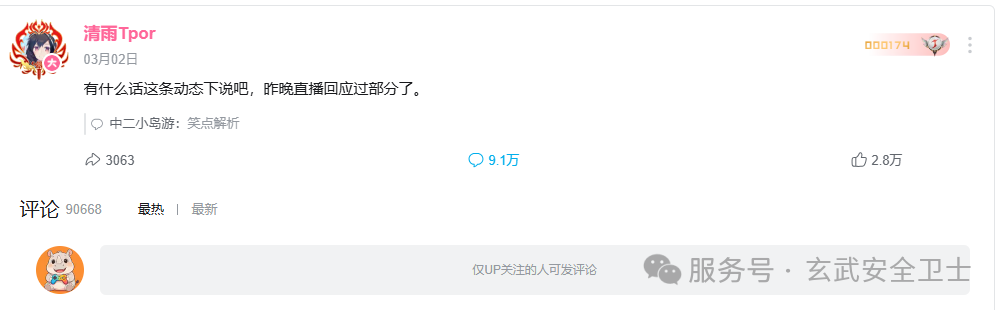 3月3日,B站官方果断对“清雨Tpor”账号作出永久封禁处理,使其全网搜无可搜;曾与清雨有正式合作的《永劫无间》官方,也第一时间发起解除共创申请,公开与他划清界限。